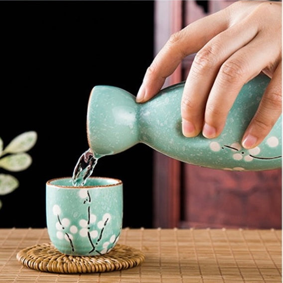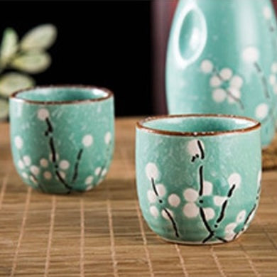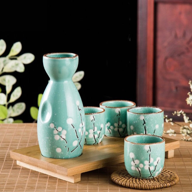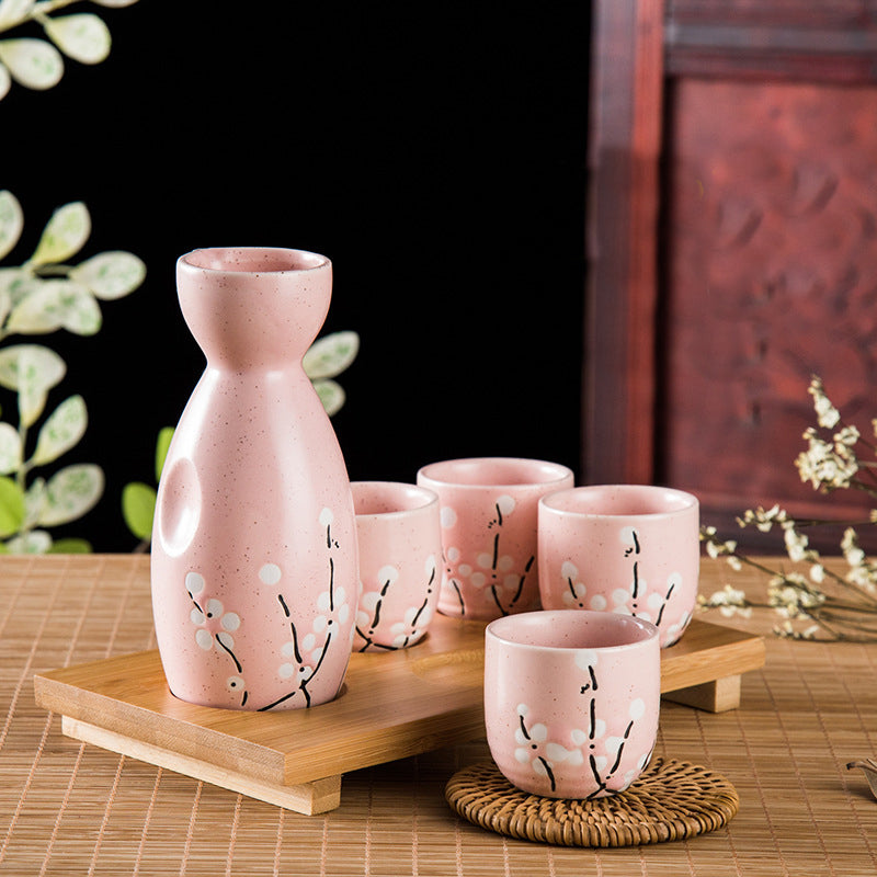 Have a drink using this 5 Piece Sakura Sake Set. Featuring four hand-painted cups and a specialized sake decanter bottle. Use for years and enjoy every sip. This hand-painted fire-glazed ceramic sake set is the real deal. No novelty or frills, just a reliable, affordable, and quality way to enjoy your favorite sake.