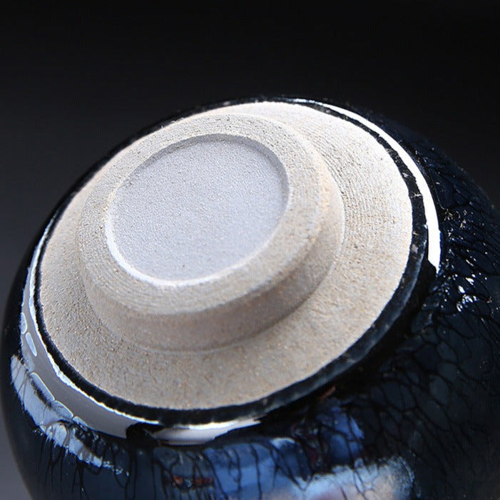 Introducing the Blue Kiln Change Kung Fu Cup, a stunning piece of functional art that is perfect for any tea lover. This tea cup is handcrafted using the traditional Jianzhan technique, which results in a unique and beautiful blue color that changes based on the angle of light.