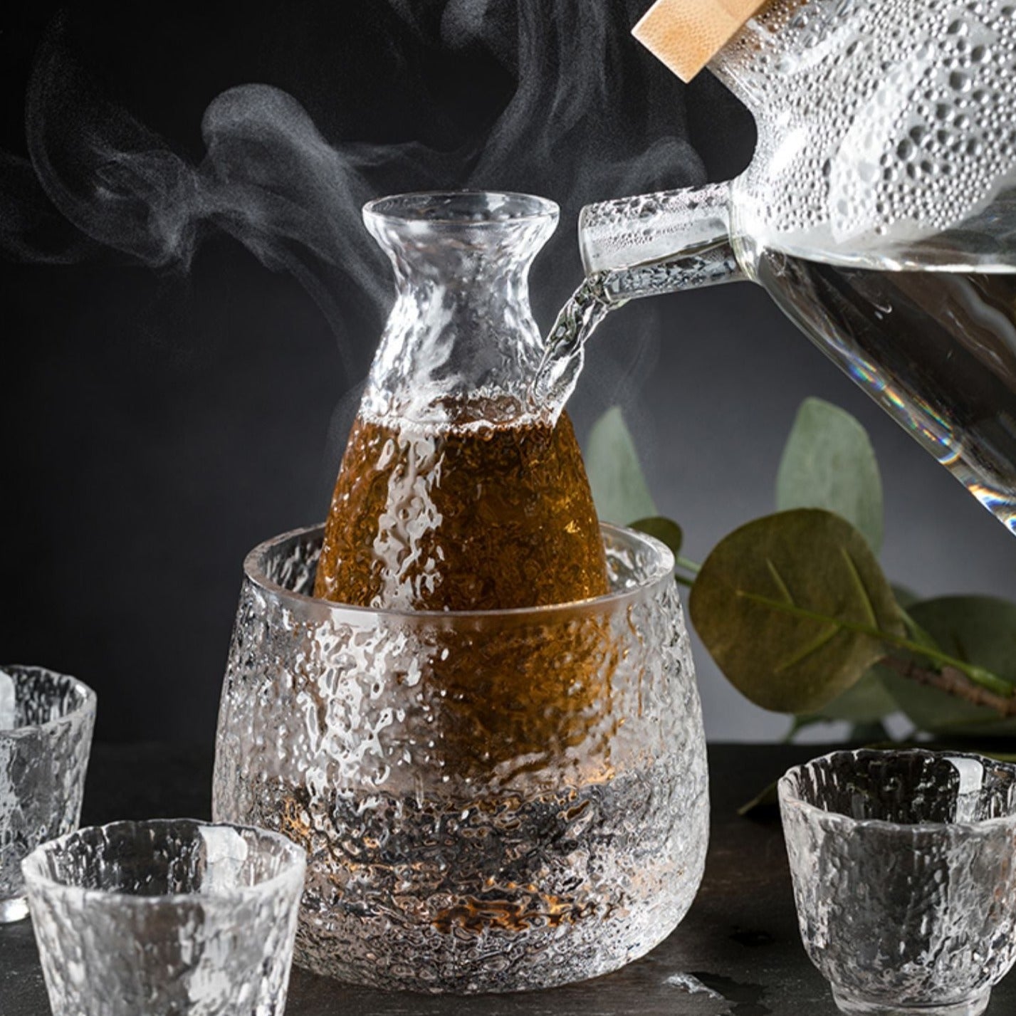 Introducing our exquisite Glass Sake Set with Decanter, a perfect blend of elegance and functionality. This beautifully designed set is crafted to elevate your sake-drinking experience while keeping your beverage at the ideal temperature, whether you prefer it hot or cold.
