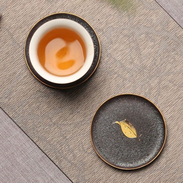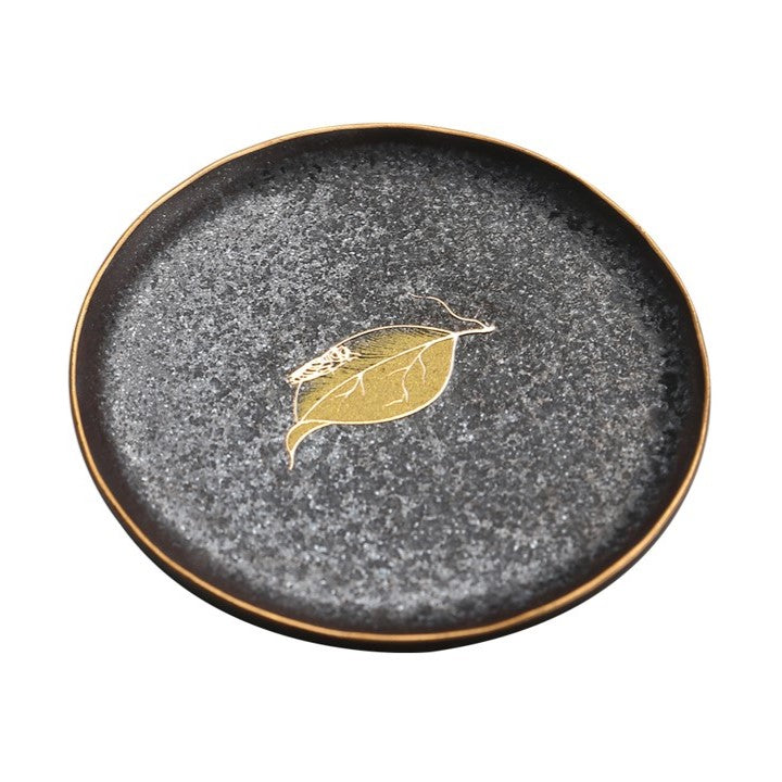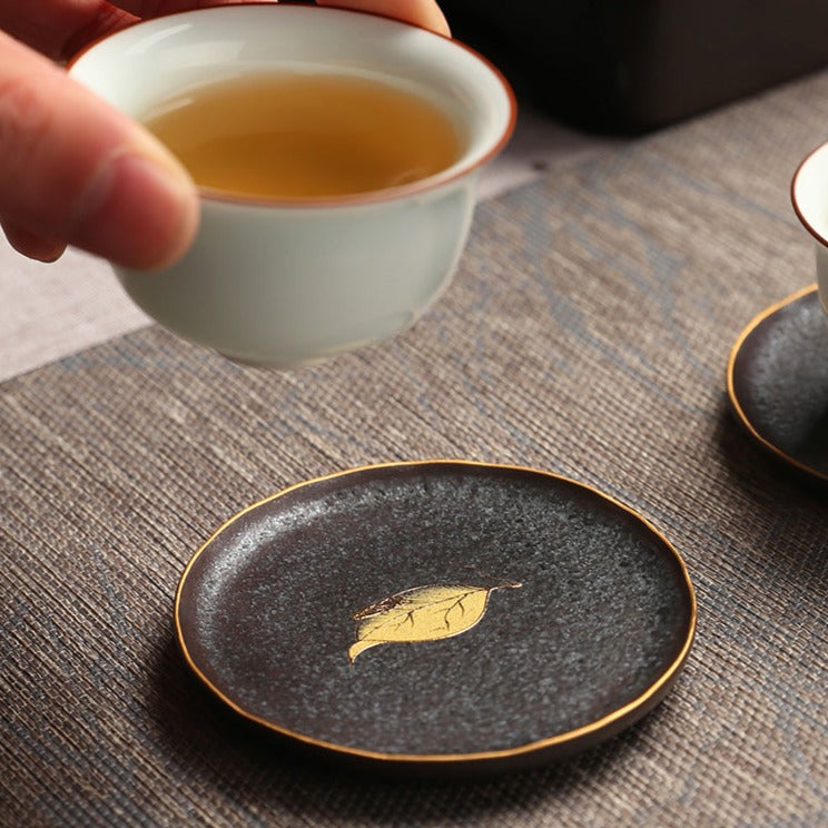 The standout feature of this ceramic coaster is the intricately detailed golden leaf motif. The delicate veins of the leaf create a mesmerizing visual effect, catching the light and shimmering with a radiant golden glow. The rich golden hue adds a touch of elegance and sophistication, instantly elevating the coaster to a statement piece that effortlessly enhances the ambiance of your space.