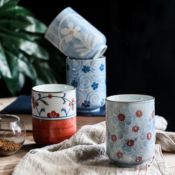 This Yunomi tea cup features a hand-painted red bottom and floral pattern. Crafted by skilled artisans, it's not just a teacup but a perfect gift for enthusiasts of Japanese culture.
