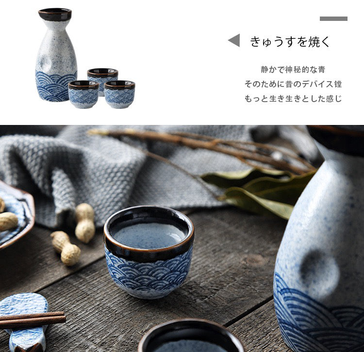 This sake set has a unique anti-skid surface, allow you to hold the sake bottle and cups steady during drinking. The simple design with an eye-catching sea-wave finish brings Japanese style to any occasion. This sake set can be used as home decoration, or as a holiday gift for family and friends.