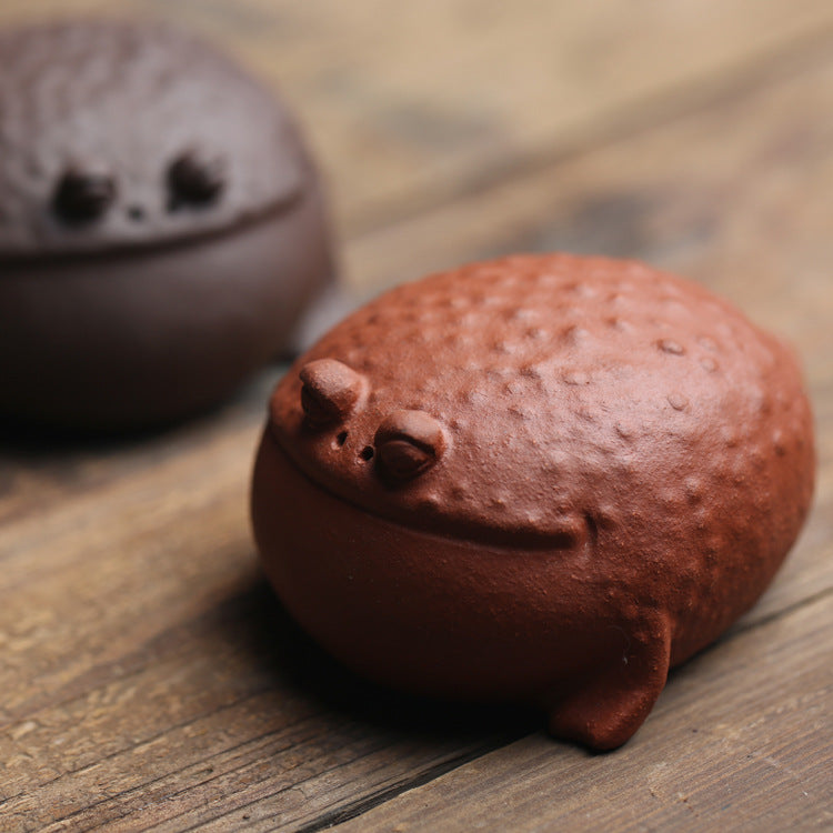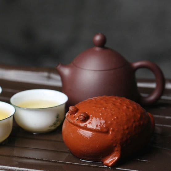 Having a Tea Pet while drinking tea is the way for the Chinese to bring good luck! This one is a clay figurine in the shape of a Money Toad. Money Toad represents a popular Feng Shui charm for prosperity. To use it, simply place it on your tea tray and pour tea all over it. It is not only the traditional way to use a tea pet but it also makes the experience more fun and special.