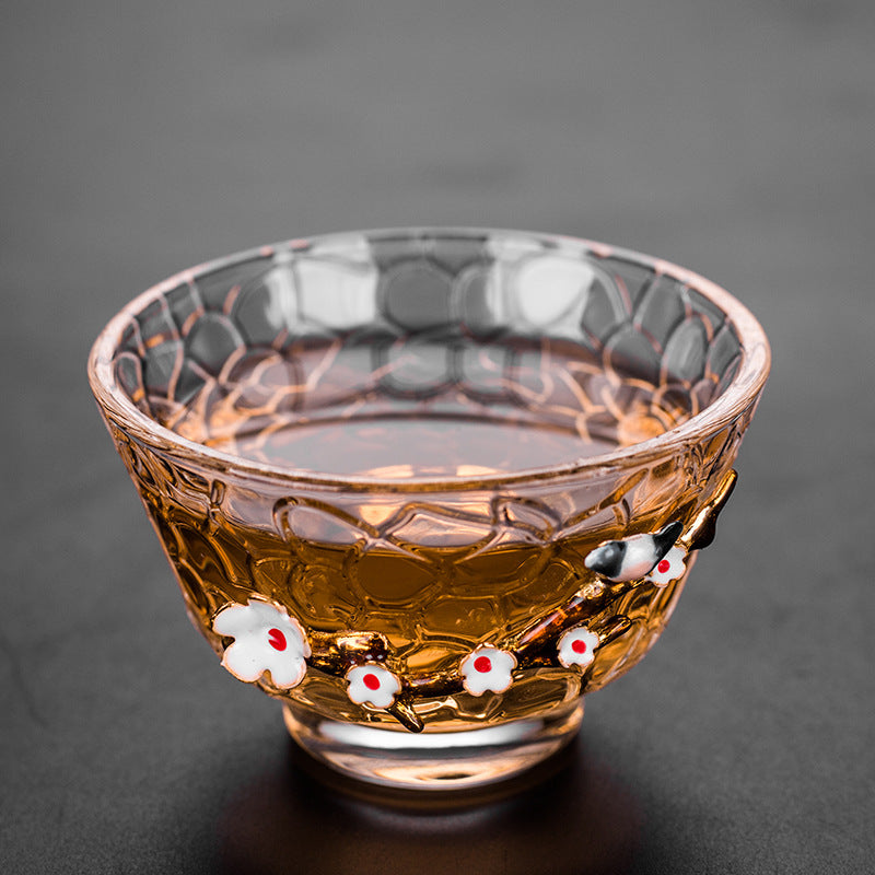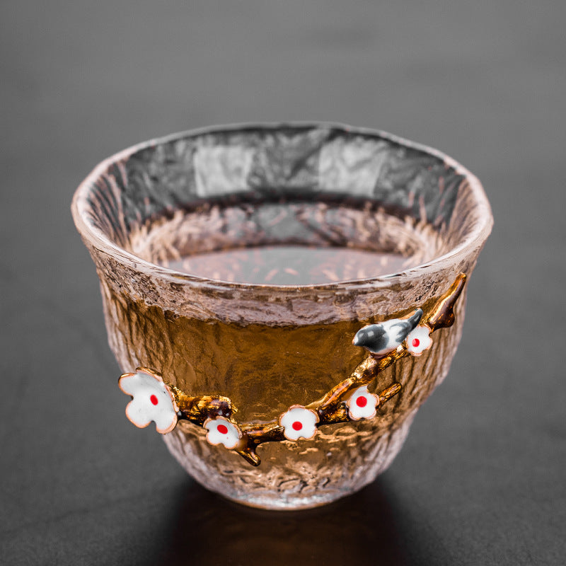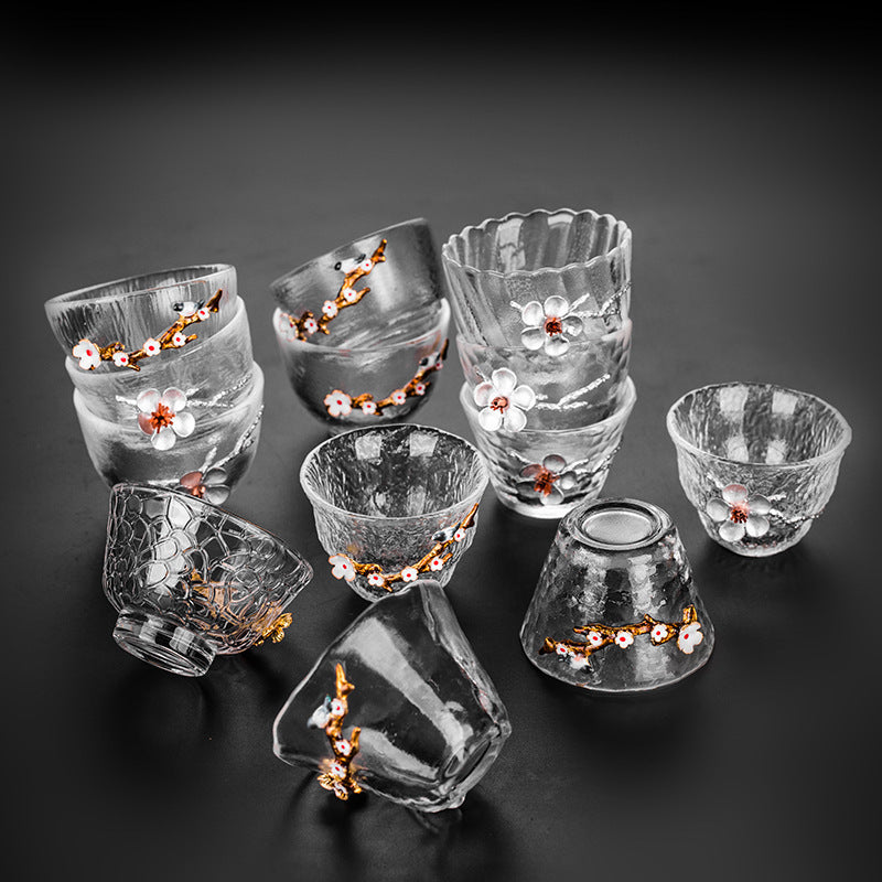 Crafted from premium hammered glass, these cups feature intricately designed plum blossoms in various styles to suit your taste. Perfect for serving sake, tea, or any beverage, these uniquely shaped cups are ideal for personal use or as a thoughtful gift.