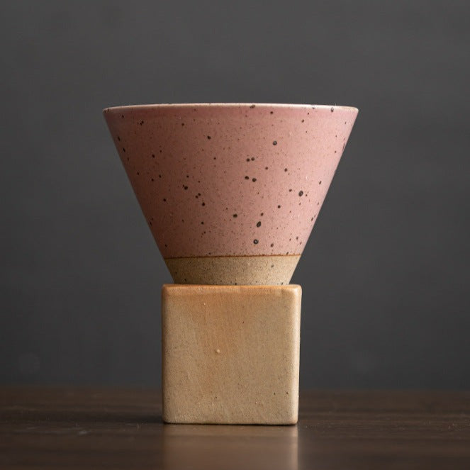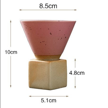 Introducing our extraordinary Reverse Cone Coffee Cup in a captivating cherry pink color, a marvel of design and craftsmanship that will revolutionize your coffee-drinking experience. This exceptional product combines a stunning stoneware cup in the shape of a cone with a carefully crafted ceramic cube that allows you to store it in reverse.