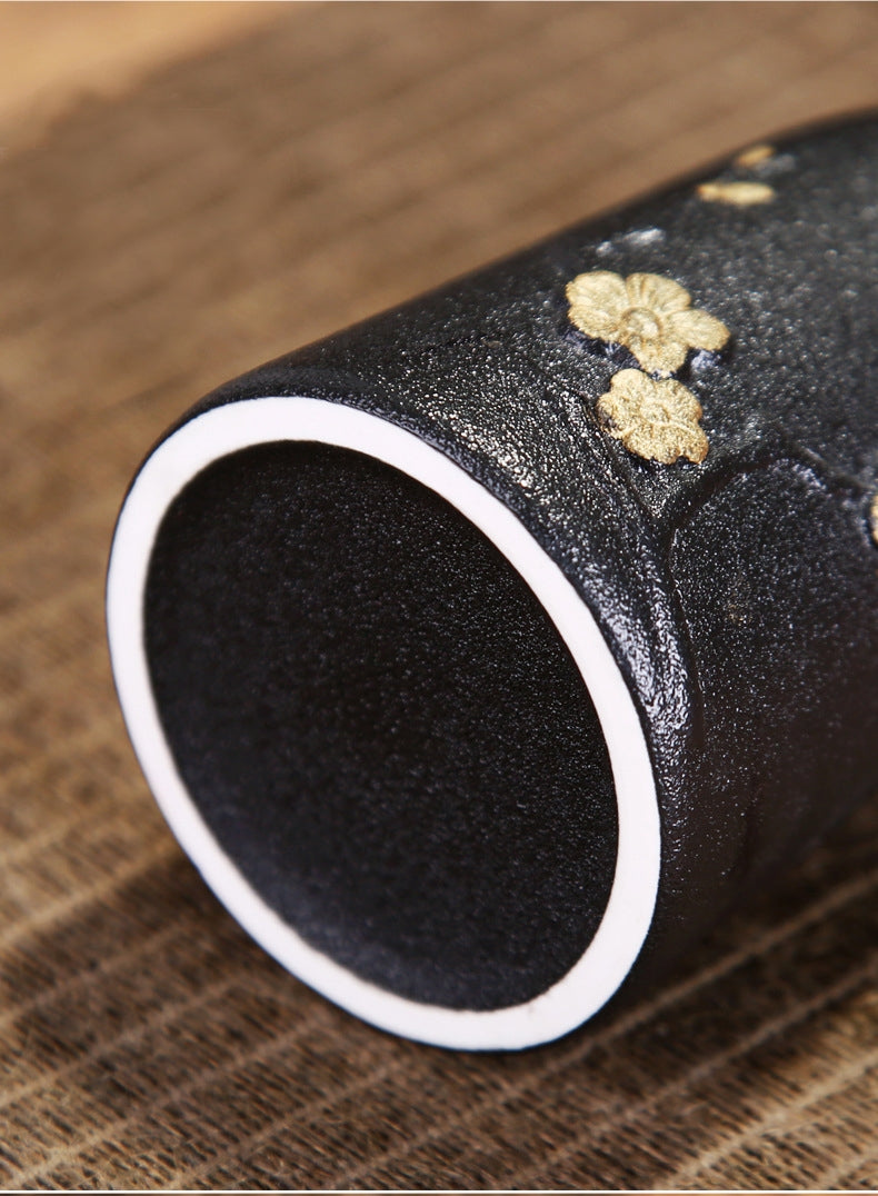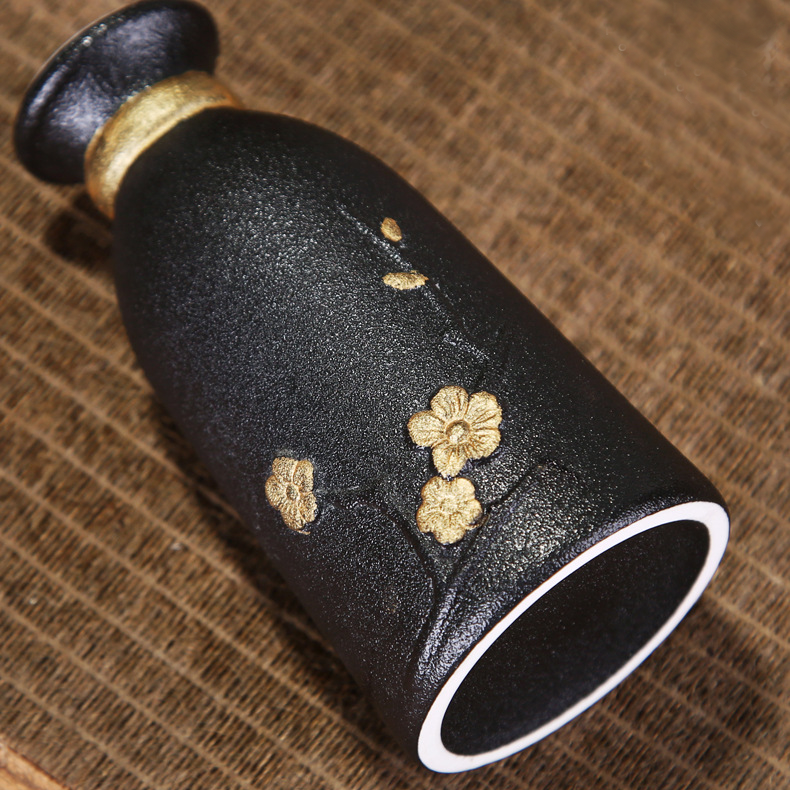 Make an evening dinner festive with these Black Alloy Plum Sake Set. Matte black with textured speckles adorns this set accompanied by a flower and leaf drawing. Its a design made of Japan's plum flower. This drinking set is great for a gift idea. It is packed in a gift box ready for giving away.
