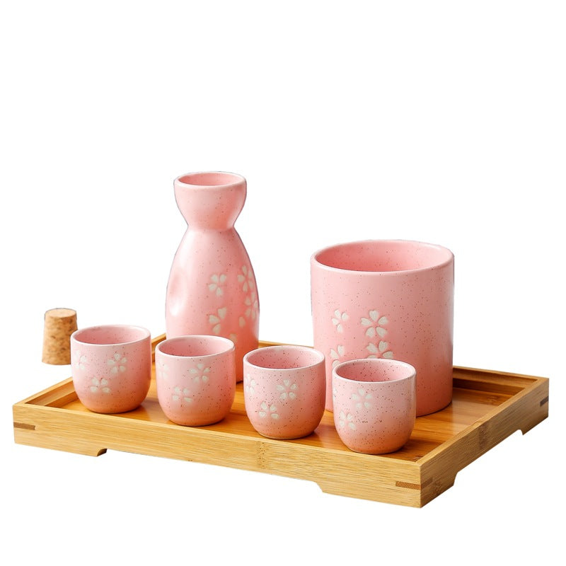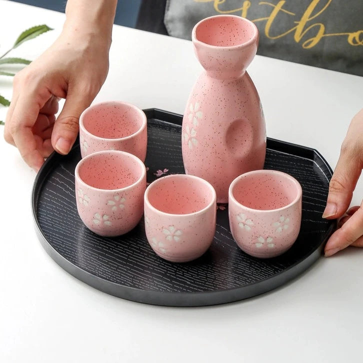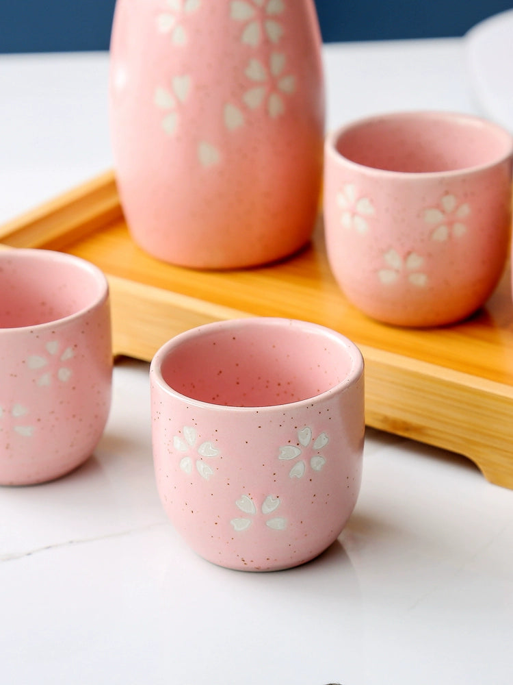 Handmade from high-temperature resistant ceramic and adorned with delicate white Sakura paint, this soft pink Sake set is designed to withstand fluctuating temperatures. The set includes a sake warmer ensuring your drink stays warm even on chilly days.