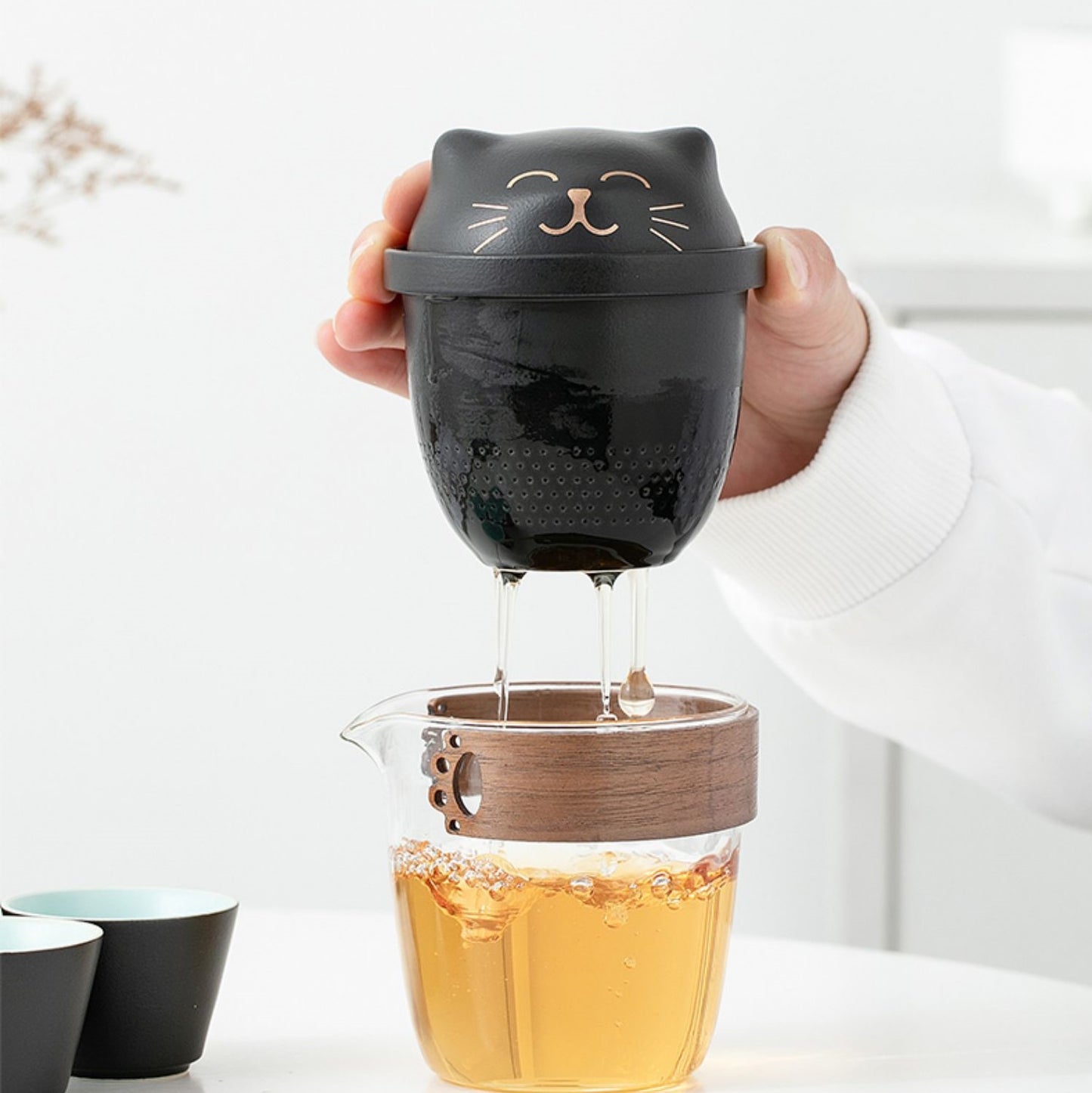 This portable tea set is designed in a funny smile cat face. The set features a cat hand shaped anti-scalding buckle that protect you from scalding. It also comes with a solid portable case, it provides full protection for carrying it from home to office. Also, it will be a perfect gift for all tea lovers.