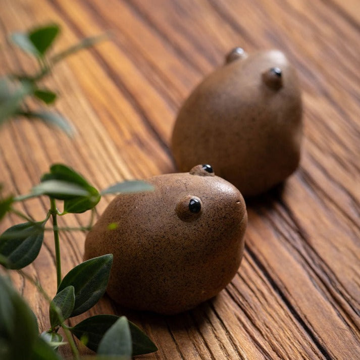 Having a Tea Pet while drinking tea is the way for the Chinese to bring good luck! This one is a clay figurine in the shape of a cute toad. This can serve as an ornament but more than that, people believe it brings fortune. To use it, simply place it on your tea tray and pour tea all over it. It is not only the traditional way to use a tea pet but it also makes the experience more fun and special.